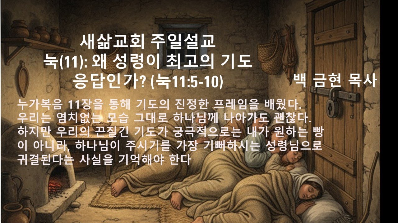 누가복음 11장을 통해 기도의 진정한 프레임을 배웠다. 우리는 염치없는 모습 그대로 하나님께 나아가도 괜찮다. 하지만 우리의 끈질긴 기도가 궁극적으로는 내가 원하는 빵이 아니라, 하나님이 주시기를 가장 기뻐하시는 성령님으로 귀결된다는 사실을 기억해야 한다.